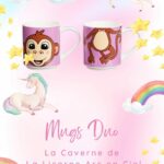 🏷️Lot de 2 mugs empilables, motif animaux, modèle au choix (tigre, ours, renard, dragon). Idéal à offrir !