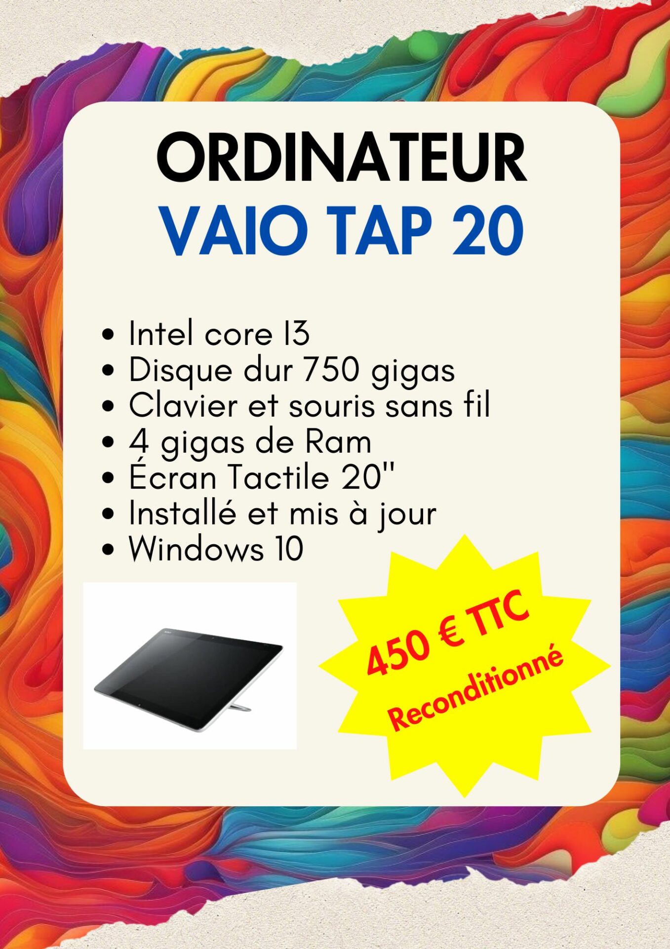 = > ORDINATEUR VAIO TAP 20  (reconditionné ♻️)