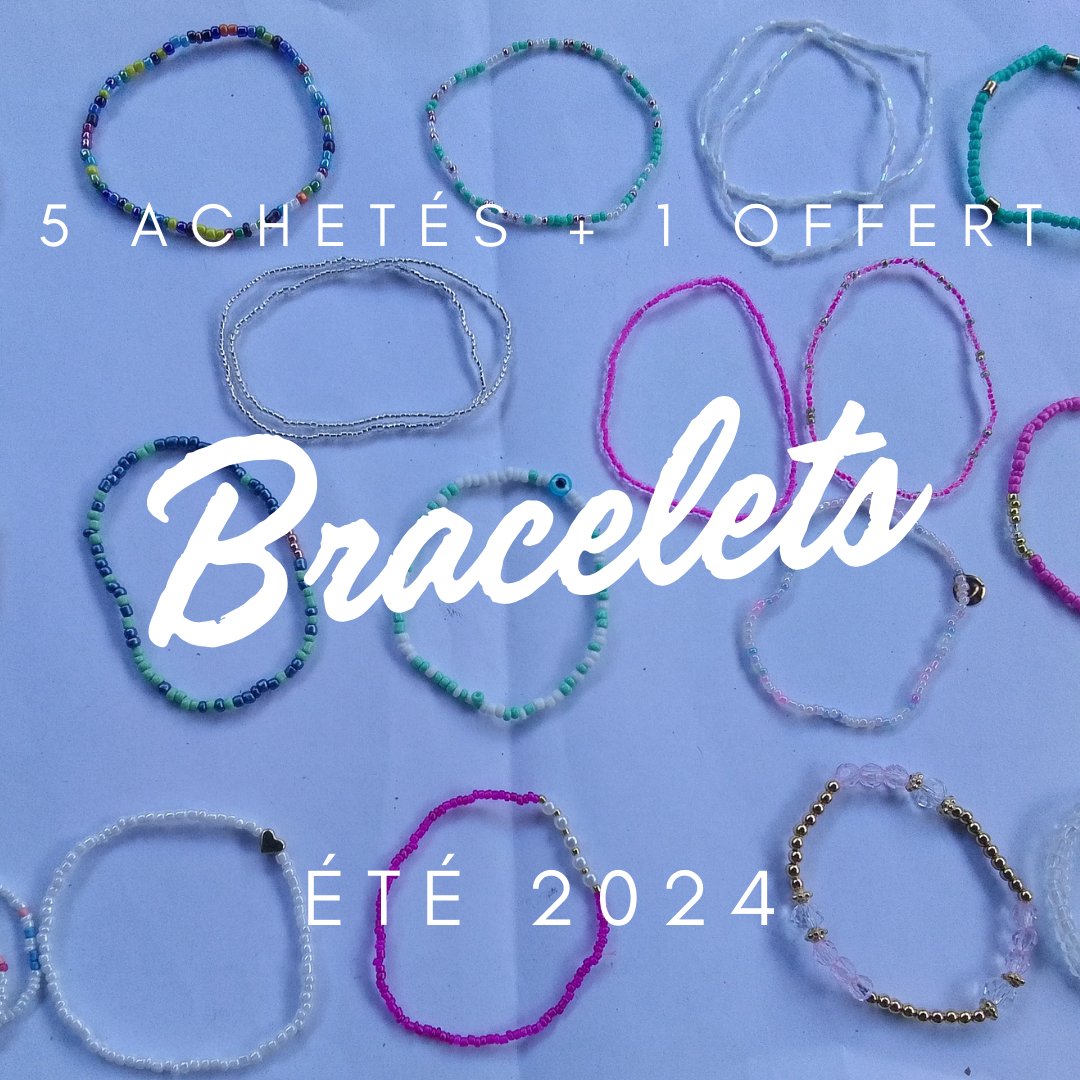 Un bracelet vous est offert dès 5 bracelets achetés, il sera directement joint à votre commande (6ème bracelet surprise offert en cadeau, remis aléatoirement parmi la sélection proposée *).