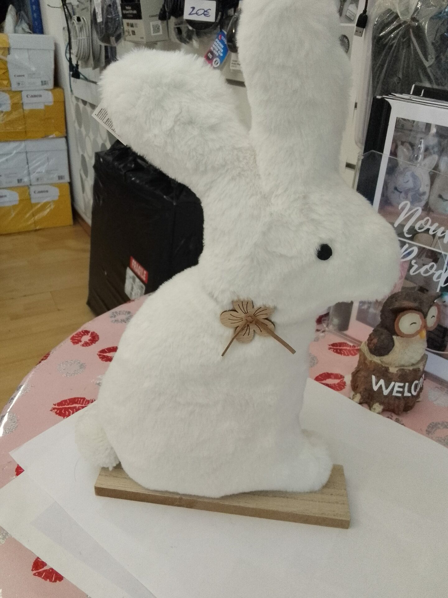 🏷️Décoration : grand lapin blanc en peluche à poser.